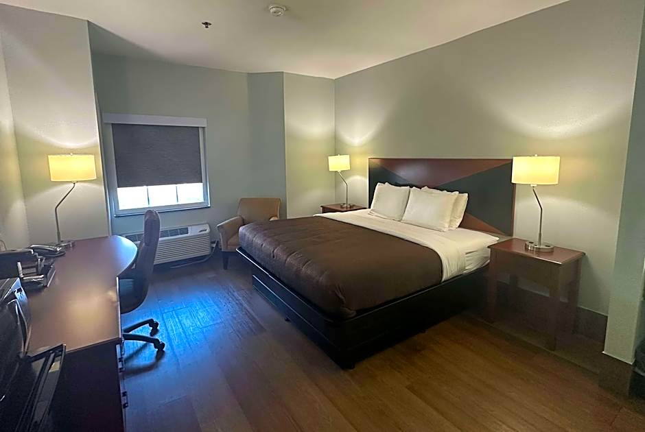 1 Queen Bed Mobility Accessible Room Roll-In Shower Non-Smoking is 301 square feet and includes a queen-size bed 150-154 width plus satellite tv , cable tv, hairdryer, and tea and coffee making facilities and is Wheelchair-accessible.
